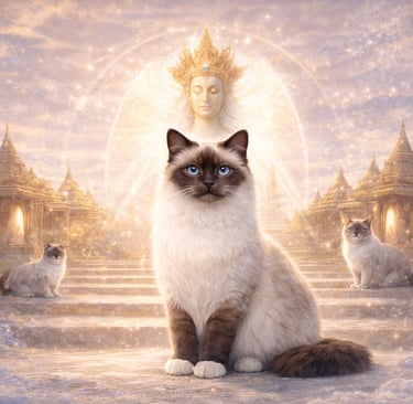 Découvrez l'histoire mystérieuse et envoûtante de ce chat sacré, gardien des temples, symbole de douceur et de spiritualité.