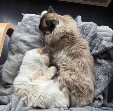 Nos chats grandissent à la maison, entourés de présence, de respect et d'attention, afin de devenir des compagnons équilibrés, bien dans leurs pattes et proches de l'humain.