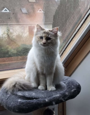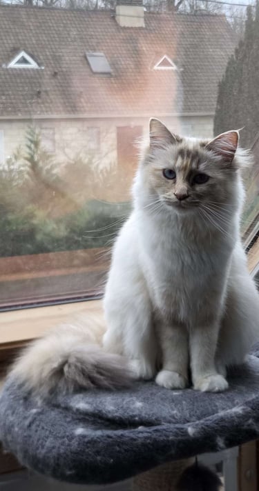 Le Sacré de Birmanie est un chat à la personnalité unique, à la fois douce, présente et profondément attachée à son humain.