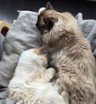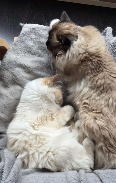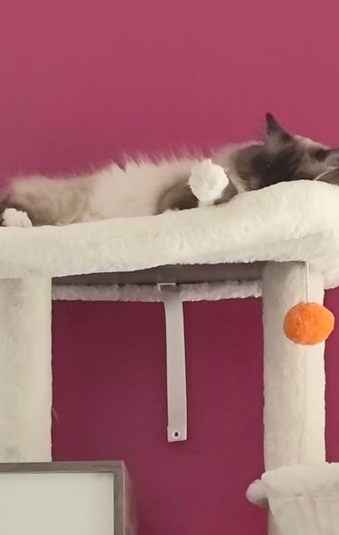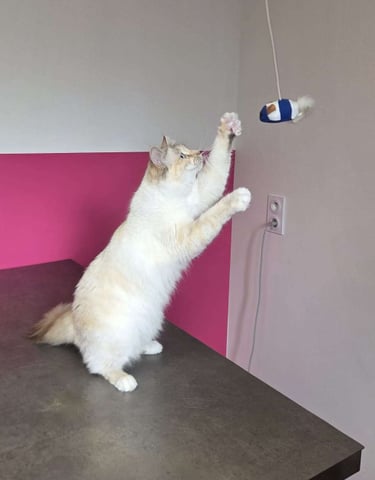 Joueur sans être excessif, le Sacré de Birmanie apprécie les jeux doux et les interactions calmes. Il aime participer à la vie de la maison, souvent à sa manière : discrète, observatrice, mais bien présente.