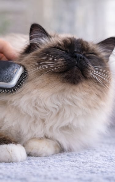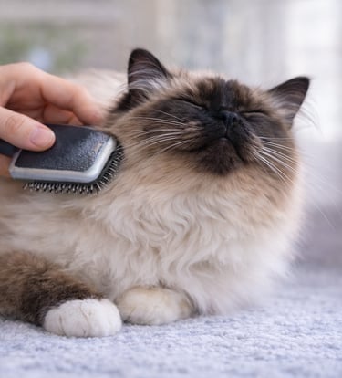 Le toilettage est aussi un moment privilégié de calme et de complicité, apprécié par le Sacré de Birmanie lorsqu’il est réalisé en douceur.
