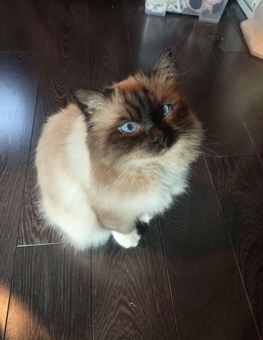 Mais au-delà de son physique, c’est surtout son tempérament qui m’a conquise. Le Sacré de Birmanie est un chat sensible, équilibré et profondément attaché à sa famille. Il recherche la présence de l’humain, s’intègre naturellement à la vie de foyer et tisse des liens forts, empreints de confiance et de complicité.