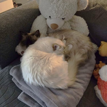 Au quotidien, sa présence apaise, équilibre et donne le tempo. C’est un chat qui inspire confiance, autant aux humains qu’aux autres chats, et c'est un excellent papa.